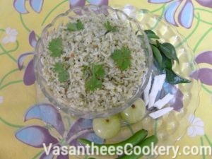 Remove it from stove and serve gooseberry rice with pappad or any chips.